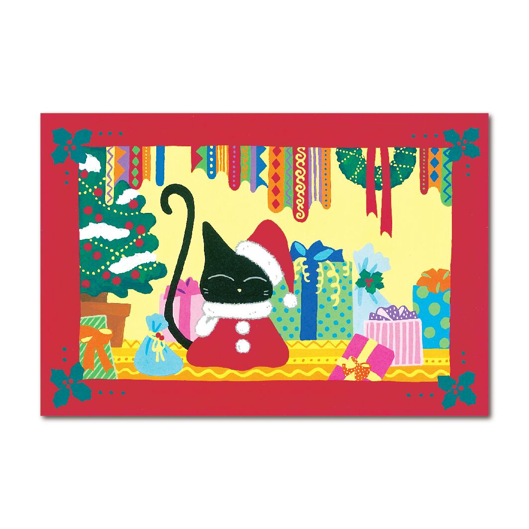 二つ折りカード『黒ネコのクリスマス4』封筒付き | Marble Miki PROJECT. net shop
